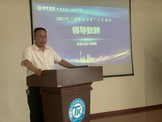 伴隨著入職測(cè)評(píng)及面試的結(jié)果出爐,6月1日上午8:00,康泰集團(tuán)第六期“銷售生力軍”人才項(xiàng)目正式開營(yíng),開營(yíng)儀式上,首先由集團(tuán)銷售總監(jiān)何朝暉先生致開營(yíng)動(dòng)員講話,何總首先對(duì)銷售生力軍的加入表示了歡迎。并向大家介紹了塑膠管道行業(yè)及康泰的營(yíng)銷戰(zhàn)略,并表示,做營(yíng)銷,首先要了解行業(yè)、產(chǎn)品,更要全面熟悉、了解康泰的發(fā)展歷程、企業(yè)文化和發(fā)展戰(zhàn)略,聚焦塑膠管道未來的發(fā)展趨勢(shì),從而在日后的營(yíng)銷戰(zhàn)場(chǎng)上做到戰(zhàn)必勝,勝必果。